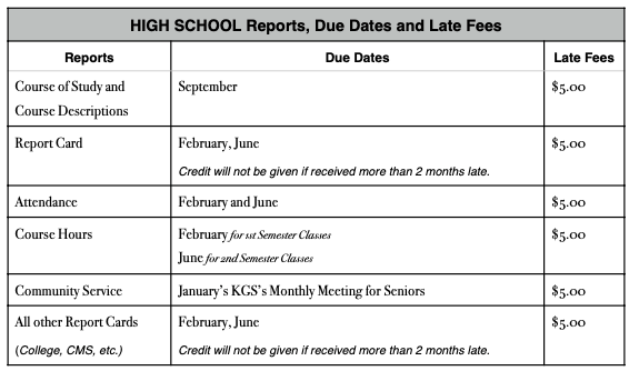 All final paperwork and requested information and changes to the paperwork must be turned in by the last office day in June or as otherwise indicated by KGS administration.